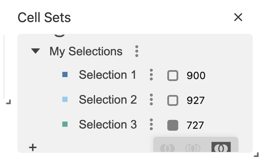Use the ‘selections’ column in the metadata table to color the cells with their corresponding Selection ID.