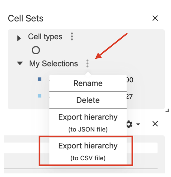 When you have finished selecting the regions of interest, click on the dots menu and select the option Export hierarchy to csv.