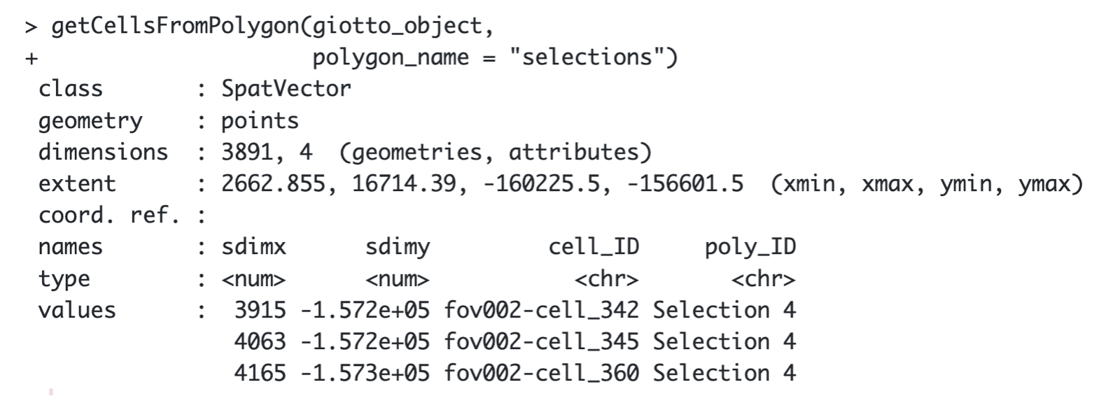 getCellsFromPolygon(giotto_object,