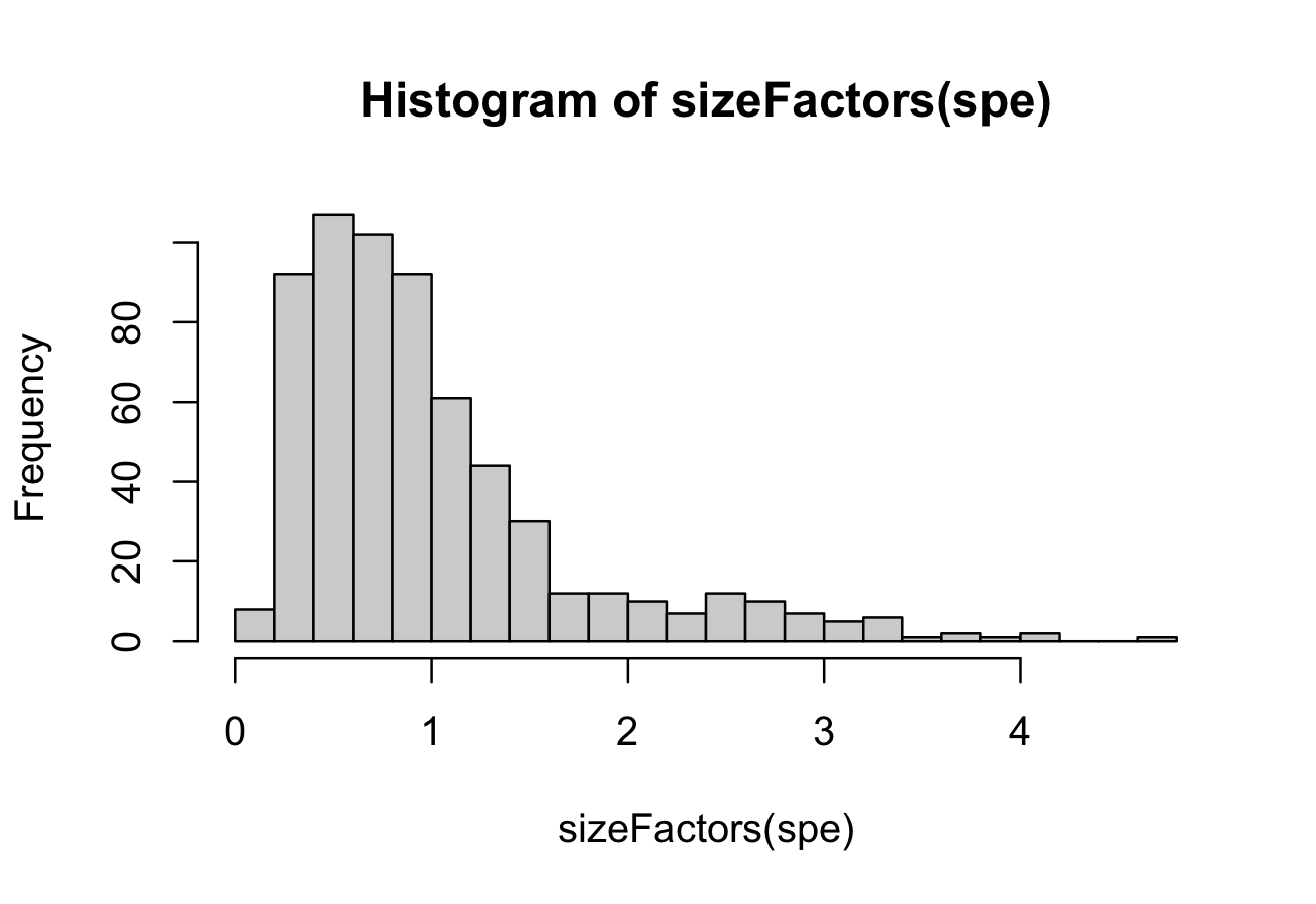 spe <- computeLibraryFactors(spe, assay.type = "raw_rna_cell")