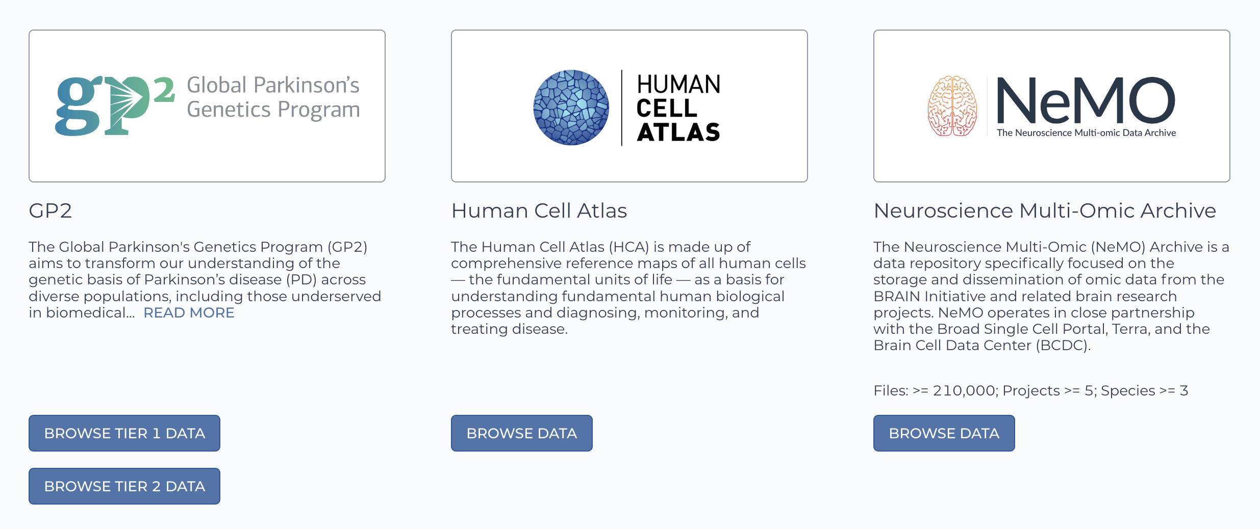 On the datasets page, scroll down until you find the NeMO database
