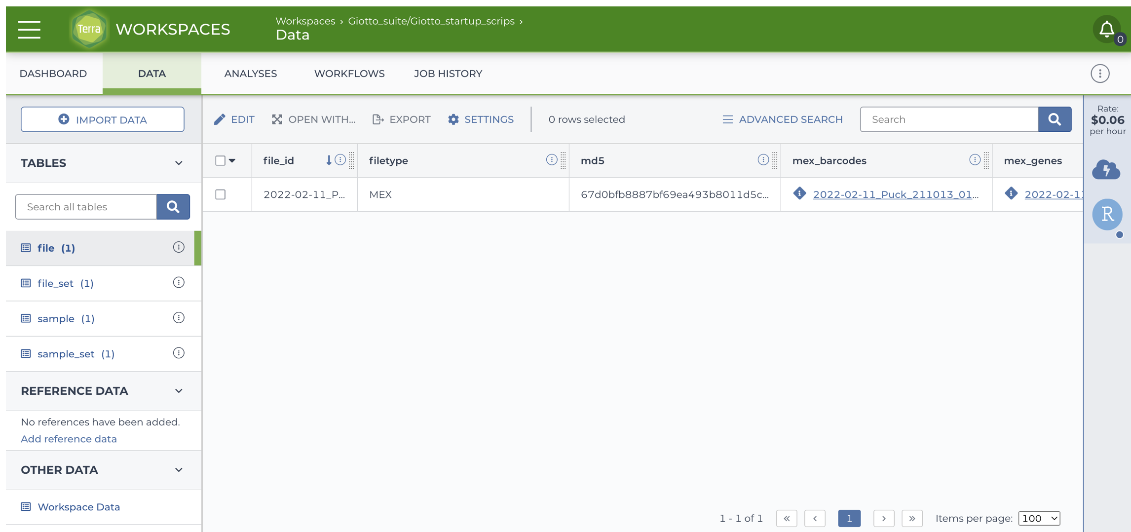 You will be directed back to your terra bio account. Select the Workspace to add your dataset.