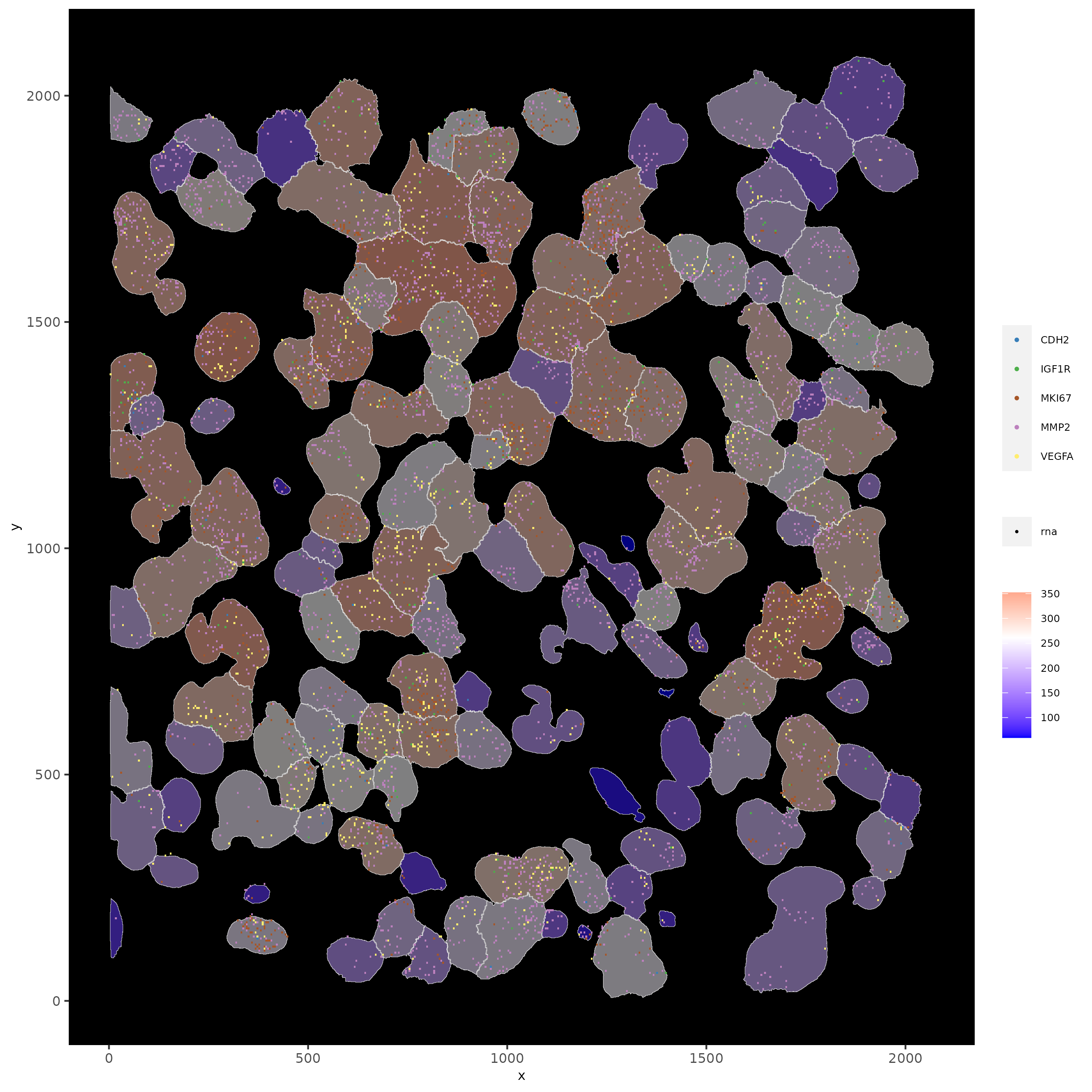 feats = list("rna" = c("MMP2", "VEGFA", "IGF1R", "CDH2", "MKI67")),