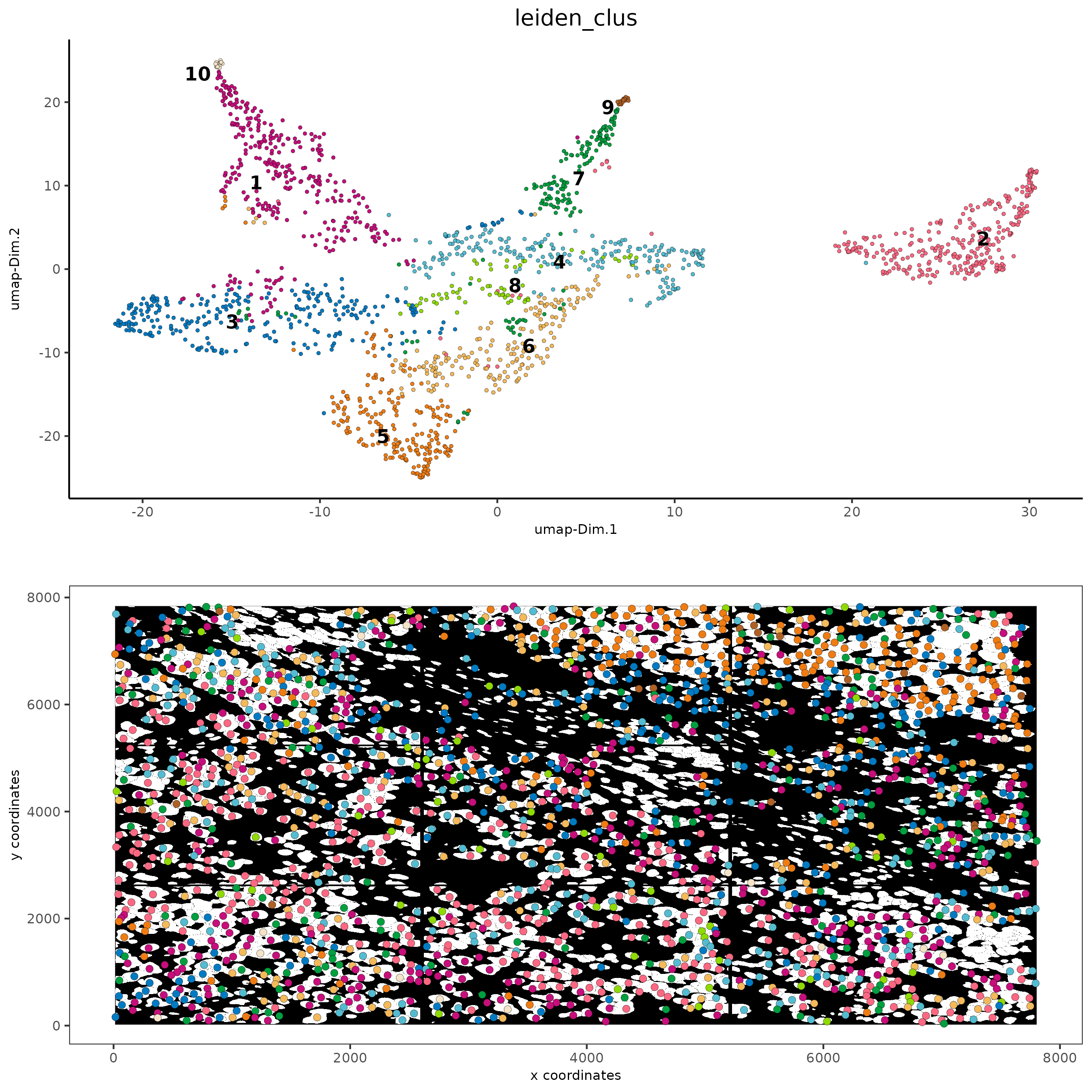 # visualize UMAP and spatial results