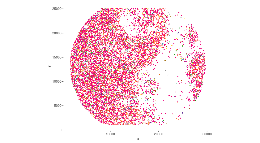 colnames(gpoints) <- c("hdmi", "x", "y", "gene", "counts")Giotto can read in a variety of different mask files provided by common segmentation tools. But first we need to check if we need to filp the x and y axis.