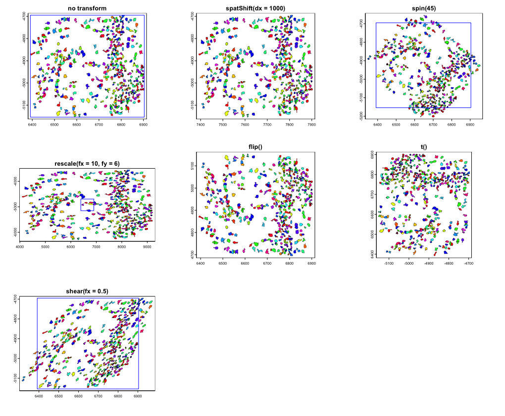 Plots demonstrating no transform, spatShift(),