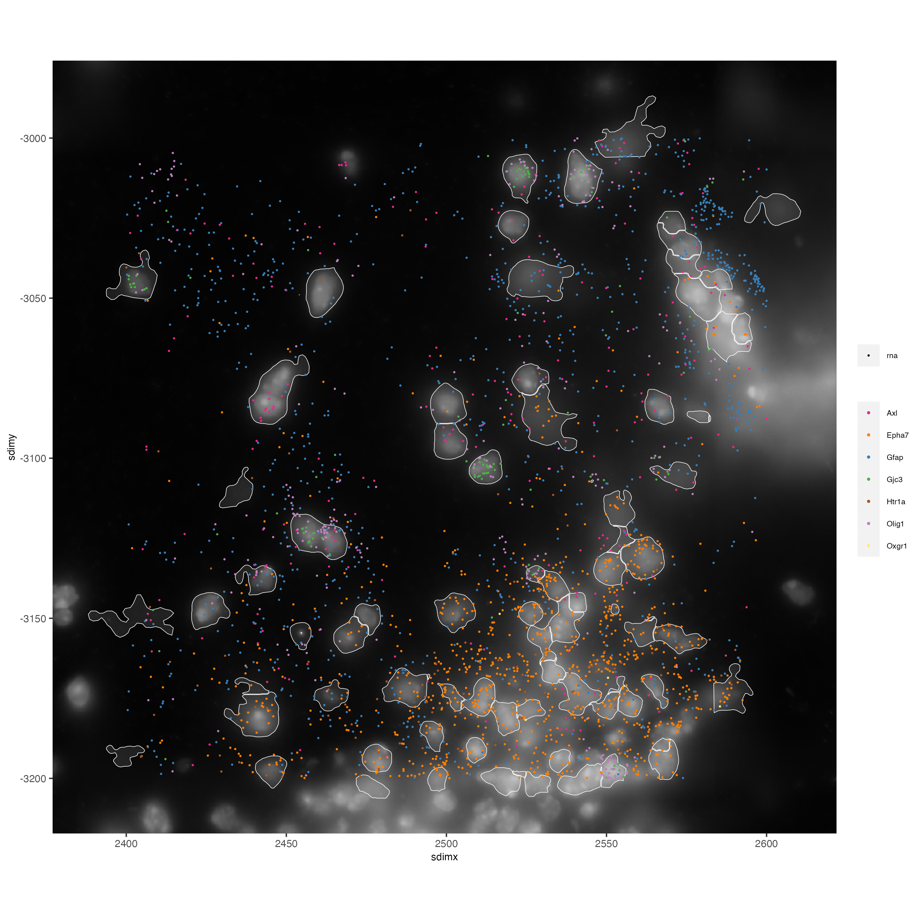 feats = list("rna" = c("Oxgr1", "Htr1a", "Gjc3", "Axl",